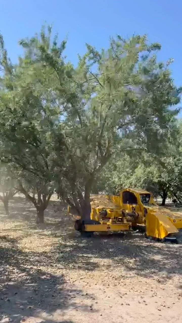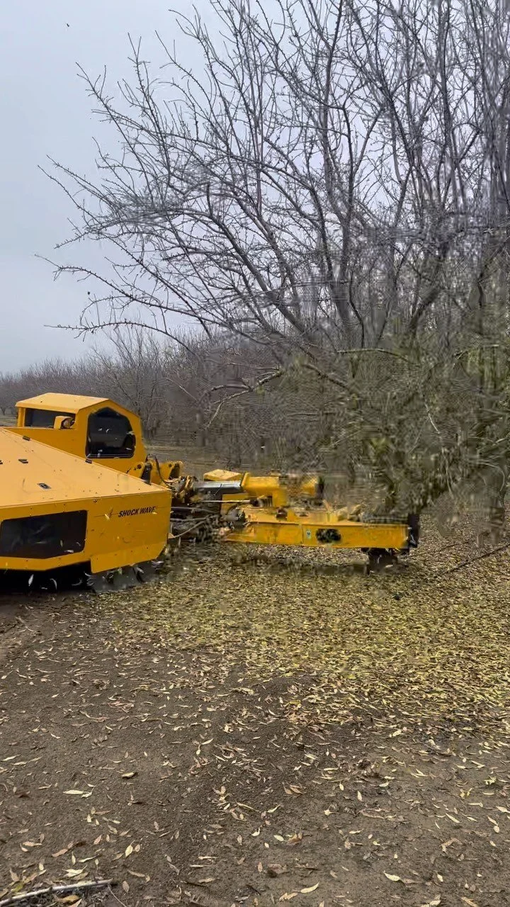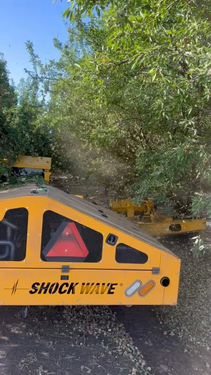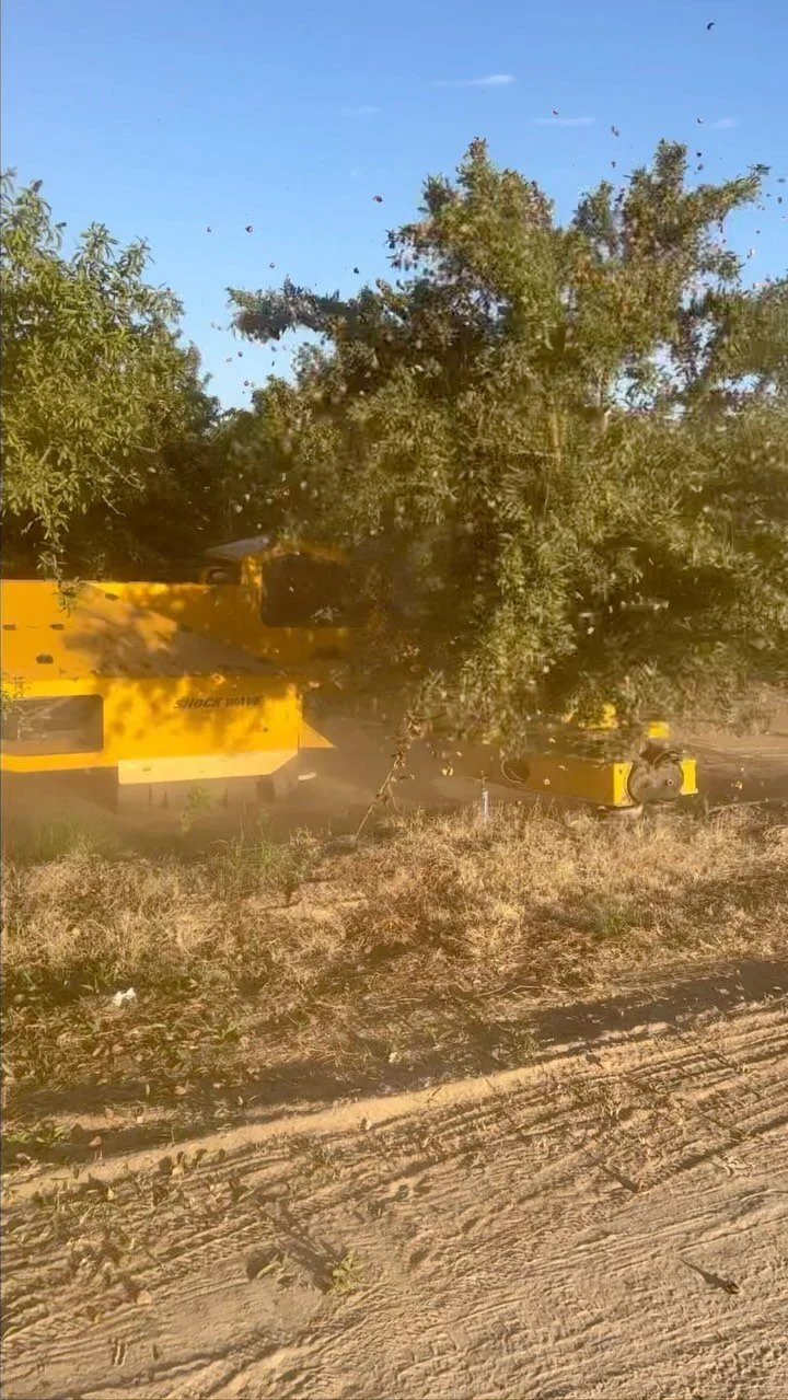 We offer a customized shaking experience for our growers. Each field is different and therefore requires different timing and shaking styles. With this in mind, we evaluate each block for size of the trees, amount of nuts on the tree, ground condition, etc. and make our plan with you based off of this information.